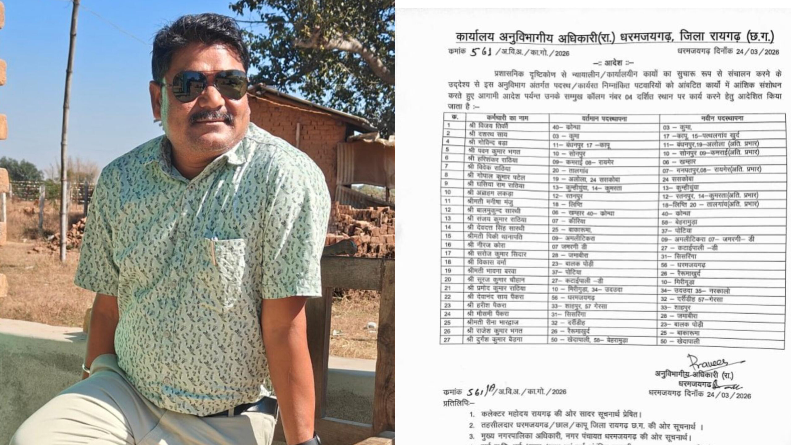 धरमजयगढ़ विकासखंड में राजस्व विभाग द्वारा 27 पटवारियों के तबादले का आदेश जारी कर व्यवस्था सुधार का बड़ा दावा किया गया था, लेकिन जमीनी हकीकत इस दावे की पोल खोल रही है। जिन कर्मचारियों को वर्षों से जमे रहने के कारण हटाया जाना था, वे आज भी उसी कुर्सी पर जमे हुए हैं। आदेशों की खुलेआम अवहेलना यह साबित कर रही है कि विभागीय निर्देश अब सिर्फ कागजों तक सीमित रह गए हैं। इससे न केवल प्रशासनिक व्यवस्था पर सवाल खड़े हो रहे हैं, बल्कि यह भी स्पष्ट हो रहा है कि कुछ लोगों के लिए नियमों का कोई मतलब नहीं रह गया है और पूरा सिस्टम उनकी मर्जी से चल रहा है।