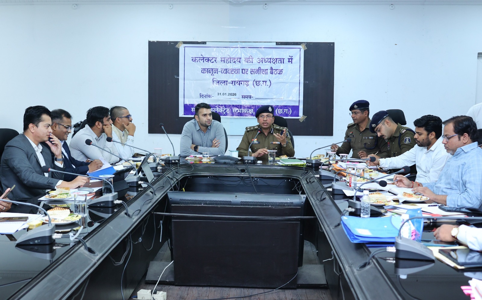 रायगढ़, 31 जनवरी 2026/ जिला कलेक्ट्रेट में आयोजित समीक्षा बैठक में कलेक्टर मयंक चतुर्वेदी और वरिष्ठ पुलिस अधीक्षक शशिमोहन सिंह ने संयुक्त रूप से जिले की कानून व्यवस्था, अपराध नियंत्रण और यातायात प्रबंधन की गहन समीक्षा की। कलेक्टर ने कहा कि शांति एवं सुरक्षा प्रशासन की सर्वोच्च प्राथमिकता है और किसी भी स्तर पर लापरवाही स्वीकार नहीं की जाएगी। उन्होंने राजस्व व पुलिस अधिकारियों को फील्ड में सक्रिय रहने, सूचना तंत्र मजबूत करने तथा संभावित घटनाओं की जानकारी तत्काल वरिष्ठ स्तर तक पहुंचाने के निर्देश दिए।