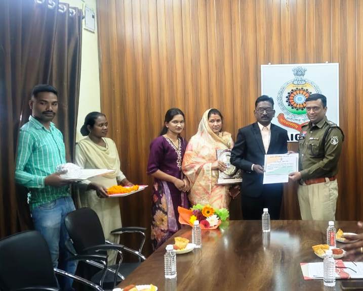 सेवानिवृत्ति के अवसर पर पुलिस कार्यालय रायगढ़ में सेवा सम्मान कार्यक्रम आयोजित किया गया। इस दौरान पुलिस अधीक्षक श्री दिव्यांग पटेल ने श्री जनकराम चौहान को पुष्पगुच्छ, शाल, श्रीफल एवं प्रतीक चिन्ह भेंट कर सम्मानित किया और उनके उज्ज्वल एवं स्वस्थ भविष्य की कामना की। कार्यक्रम में डीएसपी श्री सुशांतो बनर्जी सहित पुलिस कार्यालय का समस्त स्टाफ उपस्थित रहा और सभी ने उन्हें भावभीनी विदाई दी।