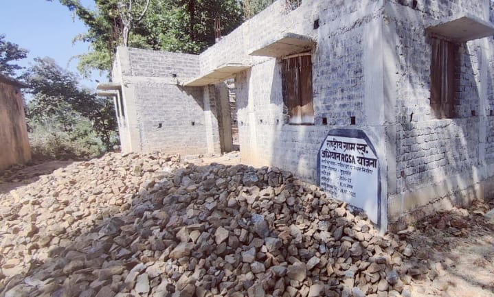 मुंडागांव पंचायत भवन निर्माण कार्य में गंभीर अनियमितता — बेस में डाले गए बड़े-बड़े पत्थर, हेंडब्रोकन बोल्डर के उपयोग से भारी भ्रष्टाचार आशंका