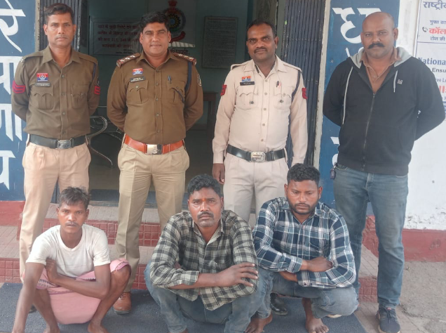 रिपोर्ट पर थाना घरघोड़ा में अपराध क्रमांक 42/2026 धारा 296, 351(2), 115(2), 140(3), 3(5) भारतीय न्याय संहिता के तहत मामला दर्ज कर तत्काल टीम गठित की गई। निरीक्षक कुमार गौरव साहू के नेतृत्व में दबिश देकर तीनों आरोपियों को रायकेरा से गिरफ्तार कर लिया गया। आरोपियों में रोहित दास महंत (40 वर्ष), हलधर राठिया (30 वर्ष) निवासी रायकेरा तथा राजु यादव (33 वर्ष) निवासी ग्राम सिंघनपुर शामिल हैं। पूछताछ में उन्होंने अपराध स्वीकार किया, जिसके बाद धारा 309(6) बीएनएस भी जोड़ी गई।